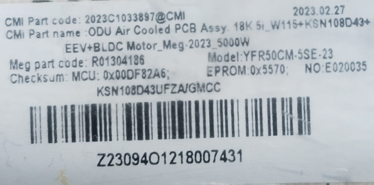 CARRIER/MIDEA OUTDOOR PCB BLDC MOTOR YFR50CM-5SE-23 / KSN108D34UEZA/GMCC CODE 5438 REFURBISHED