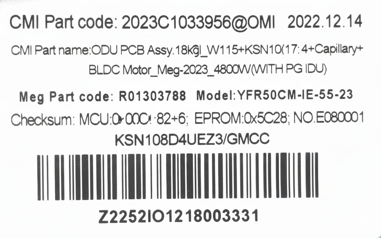 CARRIER/MIDEA OUTDOOR PCB BLDC MOTOR YFR50CM-IE+5S / KSN108D4UEZ3/GMCC CODE 5434 REFURBISHED