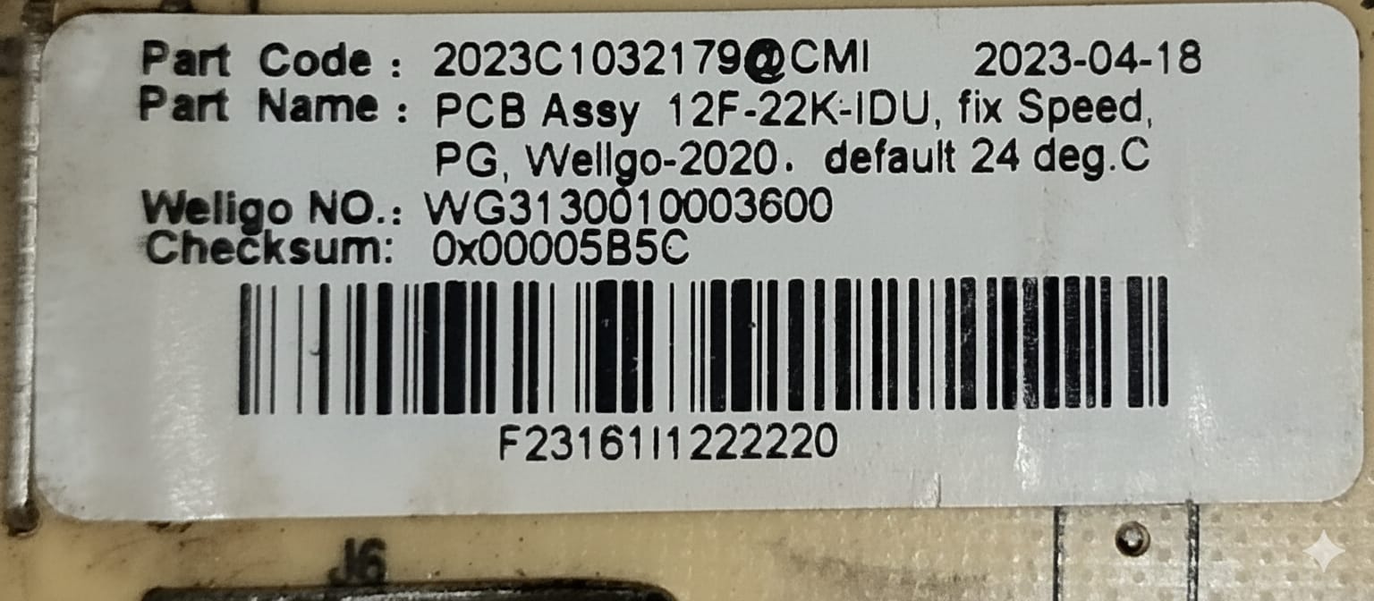 CARRIER/MIDIA FIX SPEED INDOOR PCB AC MOTOR WG3130010003600 CODE 4566 REFURBISHED